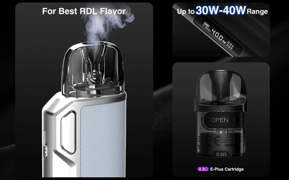 - Универсальность и совместимость. Thelema Elite 40 поддерживает работу не только с картриджами E-Plus объемом 3 мл, которые входят в комплект, но и с другими моделями бренда Lost Vape. Картриджи для под систем делают устройство универсальным решением для вейперов с разными предпочтениями.